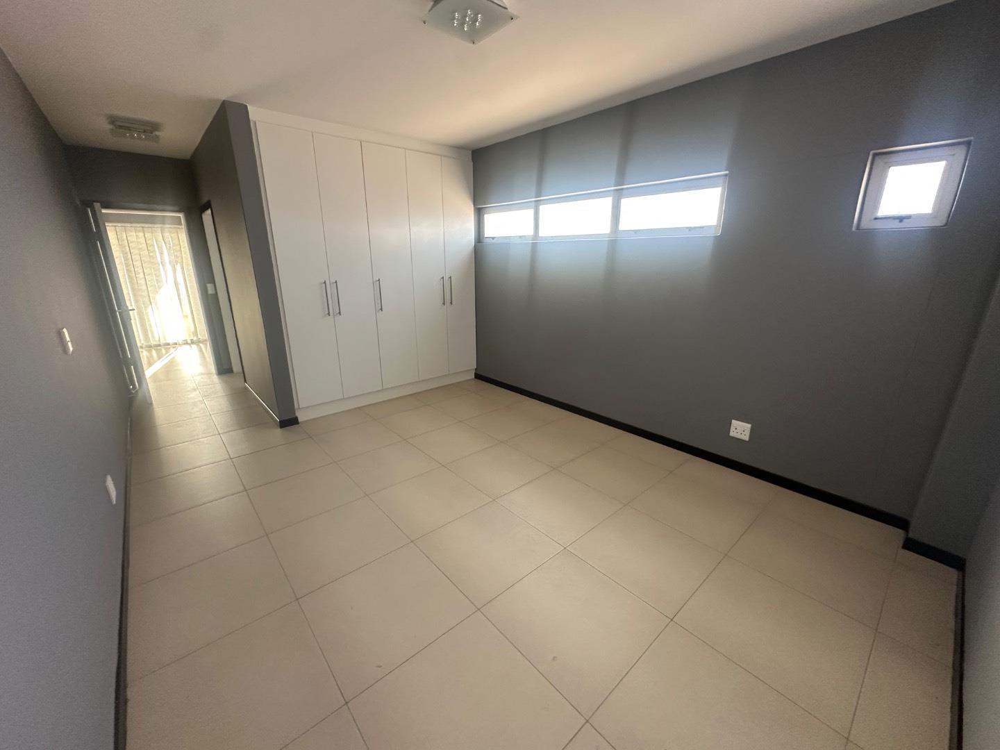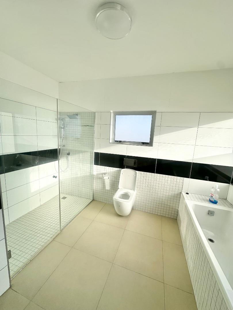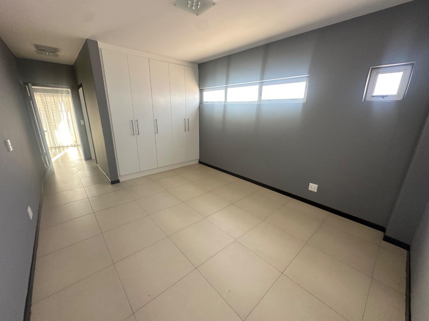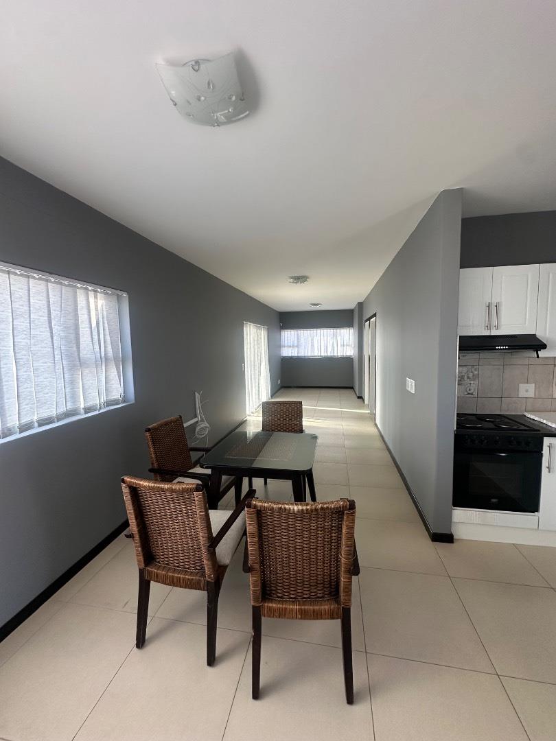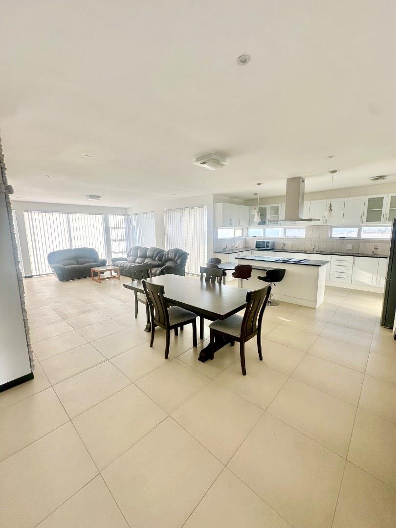 The home features a beautiful open-plan layout, including a modern kitchen fitted with sleek marble countertops, ample cabinetry, and a separate scullery for added convenience. The dining area is enhanced by a built-in indoor BBQ and additional fitted cupboards, creating a perfect space for entertaining.